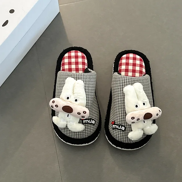 Slippers Purchasing Agent Cute Cartoon Plush Checkered Slippers for Women - Winter Home & Outdoor Style